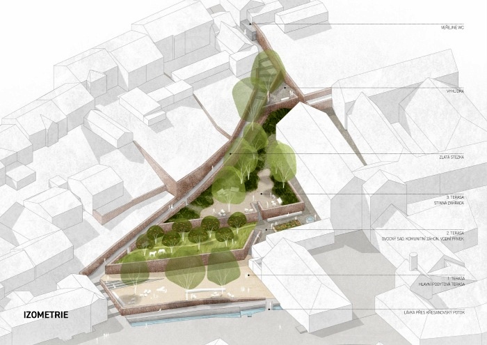 povrch. Na druhé terase studie navrhla sad, louku i možnost