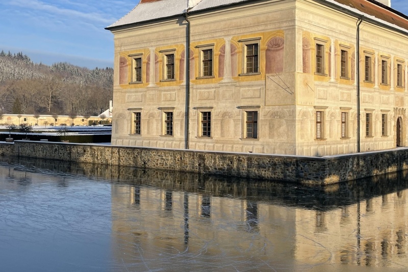 zamrzlé ploše zámeckého vodního příkopu. A to