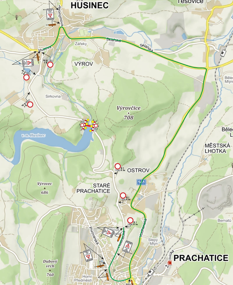 husinecké přehrady. Hlavní objízdná trasa povede